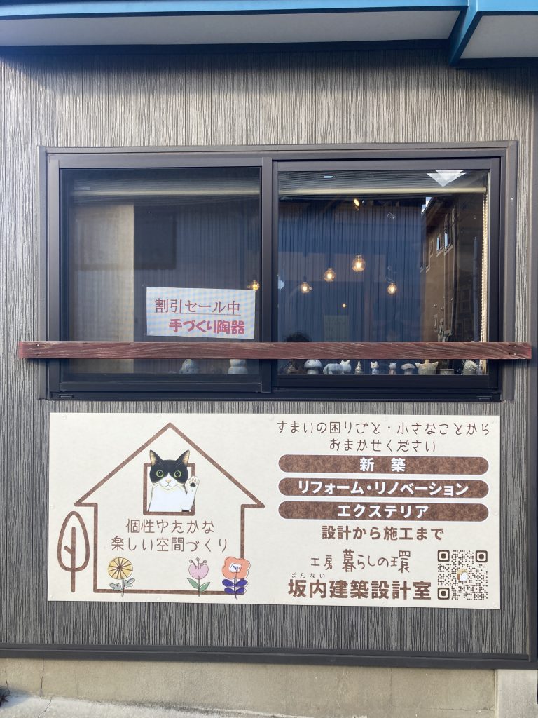 工房暮らしの環の建物南面に、看板を2つ追加設置しました(ステンレス製の看板は以前設置)